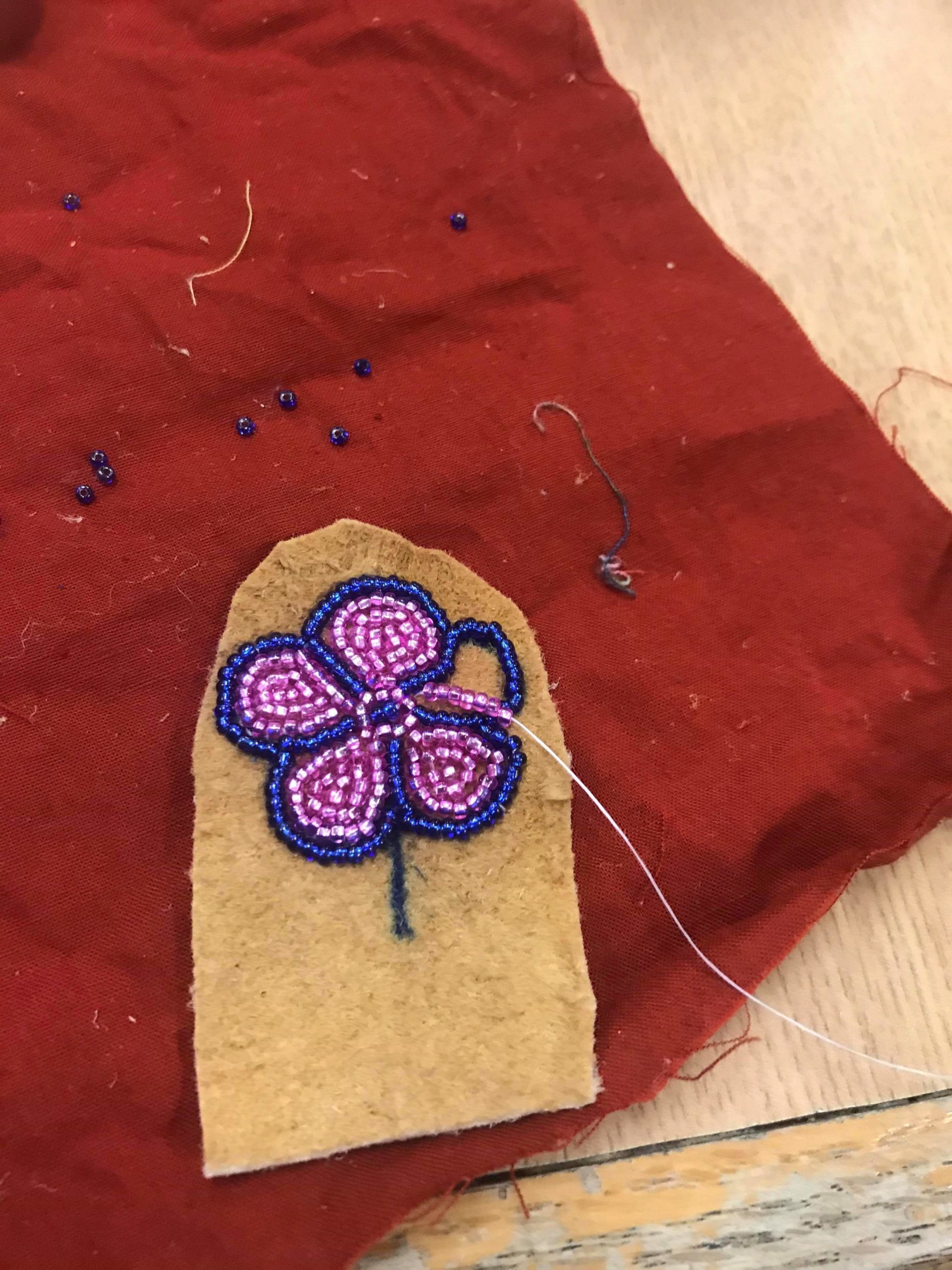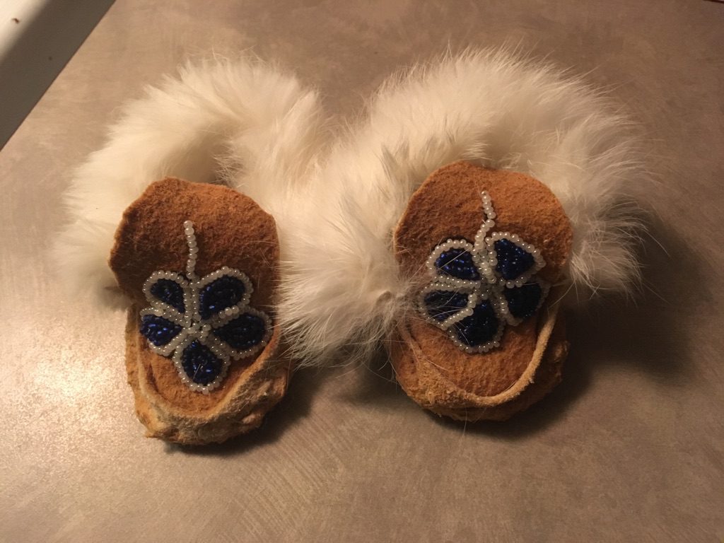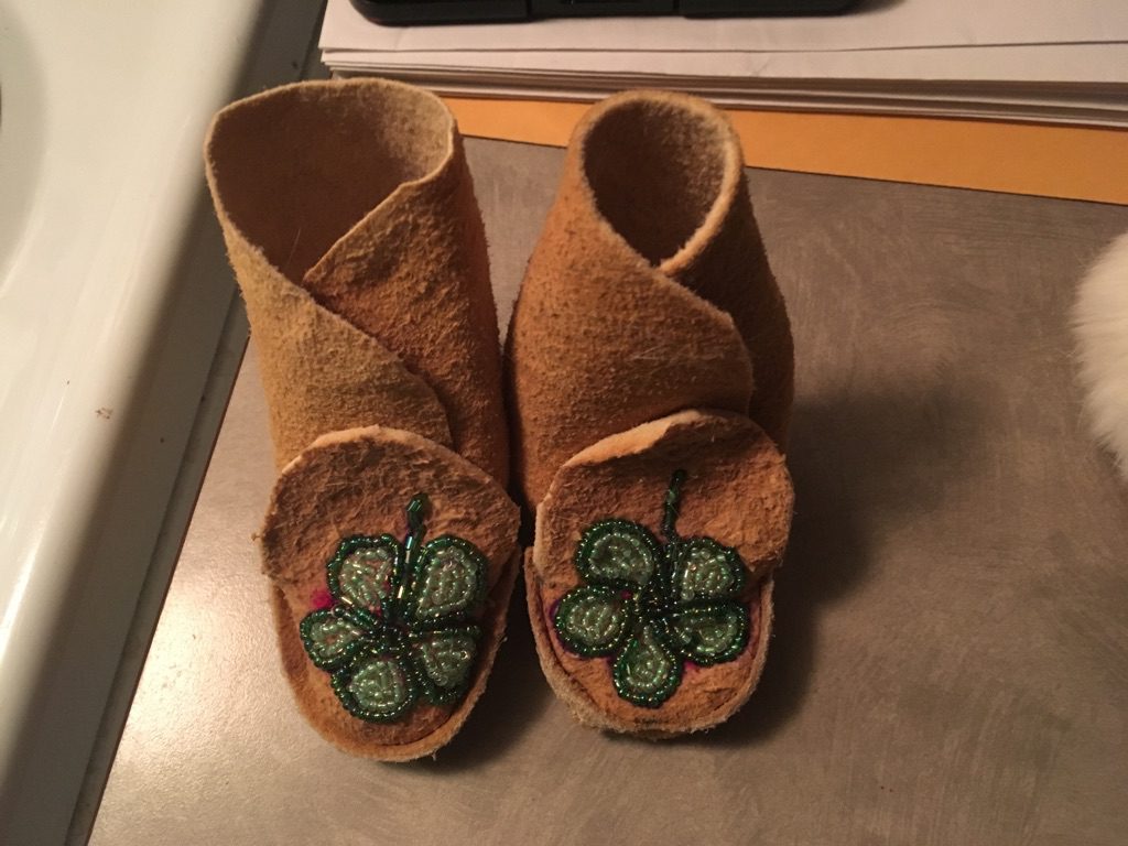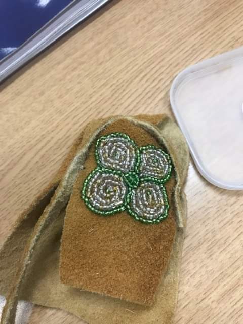 The girls have been working hard to make a pair of moccasins. Â The beading is elaborate and time consuming and the girls are working very hard. Â Thank you to Cheryl for providing this opportunity for the students.