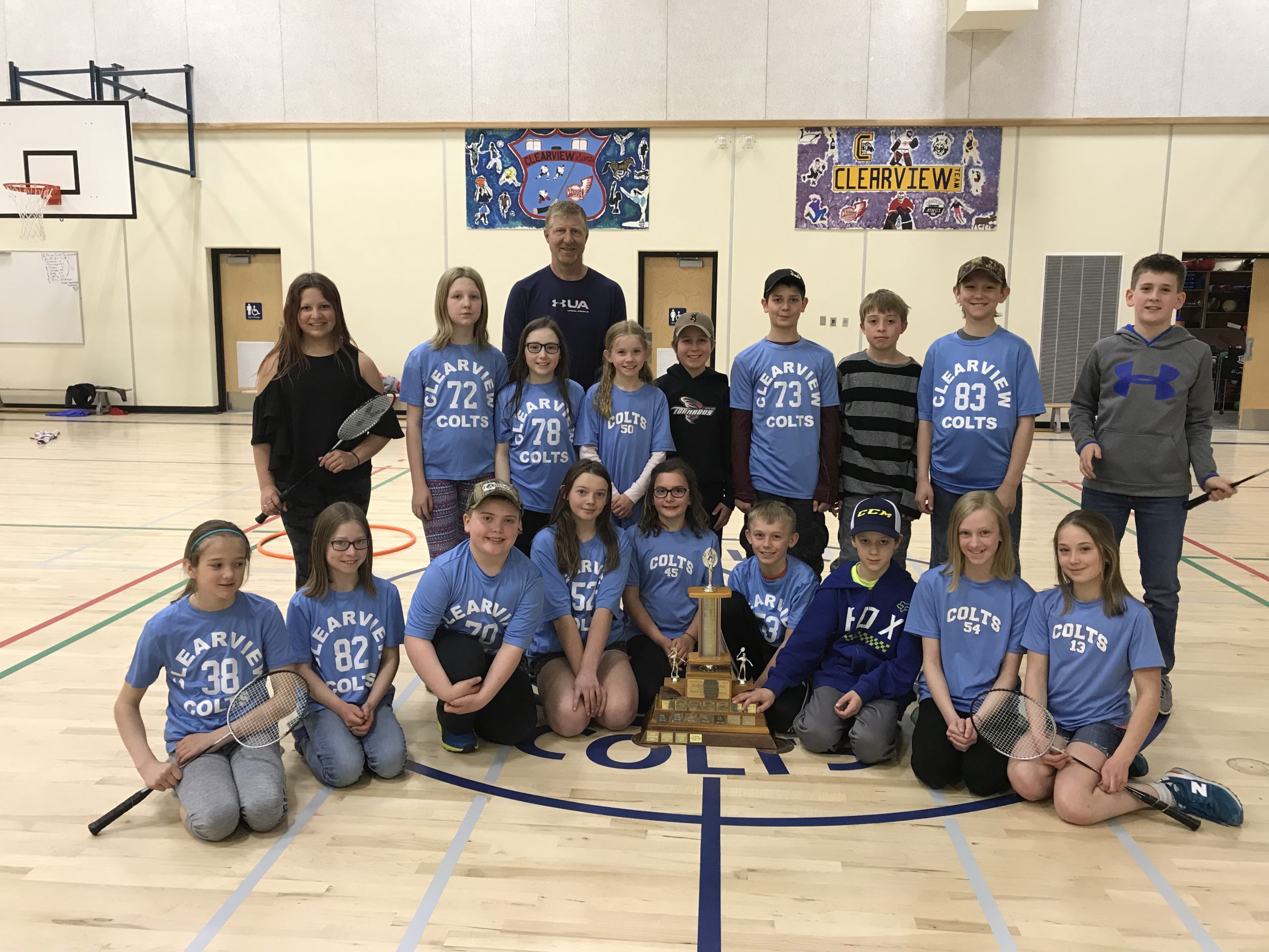 It has been an exciting year for Clearview as they took 1st place in the SD 60 Badminton tournament. Â This is a first for Clearview as they have not won this big trophy before because they have to compete with much larger schools. Â It is an impressive win when you consider that there are only 45 intermediate students from which to make up the 20 player team from Clearview. Â Although we didn’t win 1st place ribbons in any event we played very well as a team with many teams winning multiple games and making it into the final 8 or 16 teams in each event.